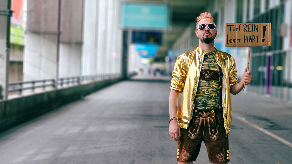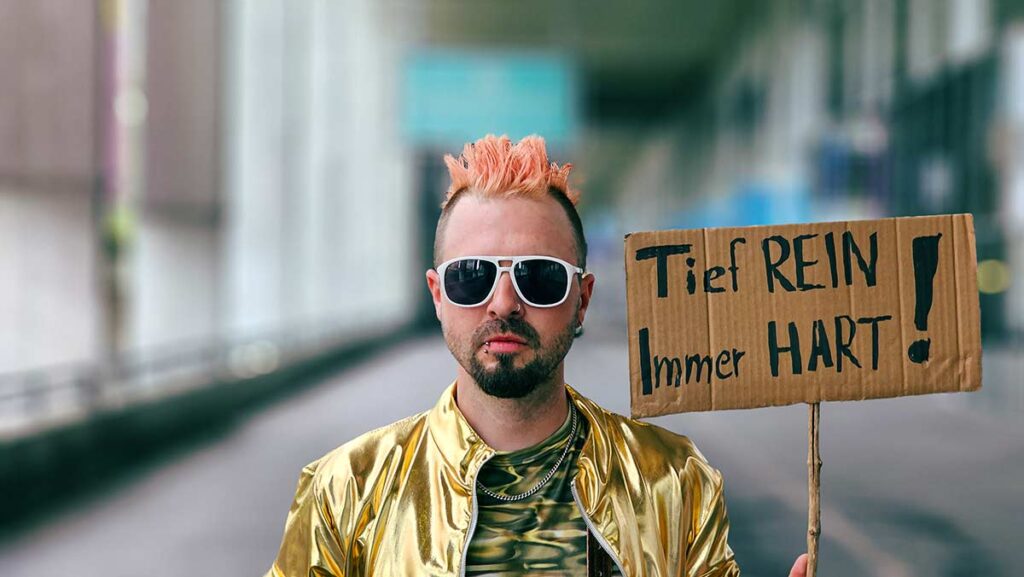 Somit ist er mehr als nur ein Musiker – er ist ein Gesamtkunstwerk, das satirische Schärfe, provokanten Humor und eine Prise Wahnsinn in den Rave-Himmel katapultiert. Mit seiner Mischung aus treibenden Beats, 90er-Nostalgie und dem modernen Sound von heute bringt er die Tanzfläche zum Beben und spielt dabei gekonnt mit deutschen Klischees und kulturellen Eigenheiten. Seine Musik? Ein unberechenbarer Cocktail aus Rave, Dance, Punk und Pop – voller Ironie und immer mit einem psychotischen Augenzwinkern.