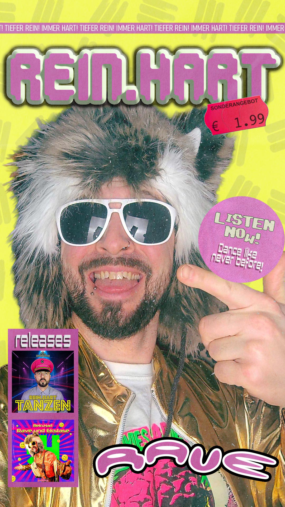 Rein.Hart vereint treibende Rave-Beats, 90er-Nostalgie und modernen Sound zu einer explosiven Mischung aus Dance, Punk und Pop. Mit satirischem Humor, provokanten Texten und einem psychotischen Augenzwinkern spielt er meisterhaft mit deutschen Klischees und kulturellen Eigenheiten. Seine Musik ist ein ironischer Cocktail aus Chaos und Präzision, der die Tanzfläche in ein Spektakel aus Ekstase und Reflexion verwandelt. Rein.Hart ist nicht nur ein Künstler, sondern ein unvergleichliches Erlebnis – energiegeladen, überdreht und herrlich unberechenbar.